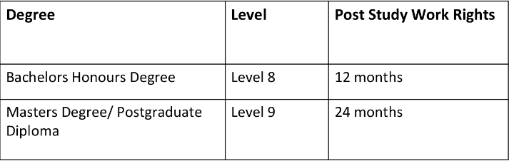 - Post study work visa of 1 year for Bachelors (Hons).
